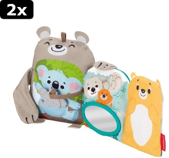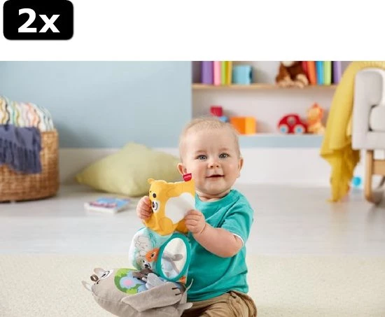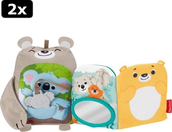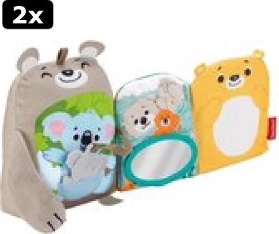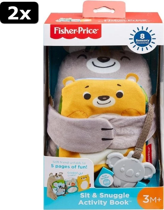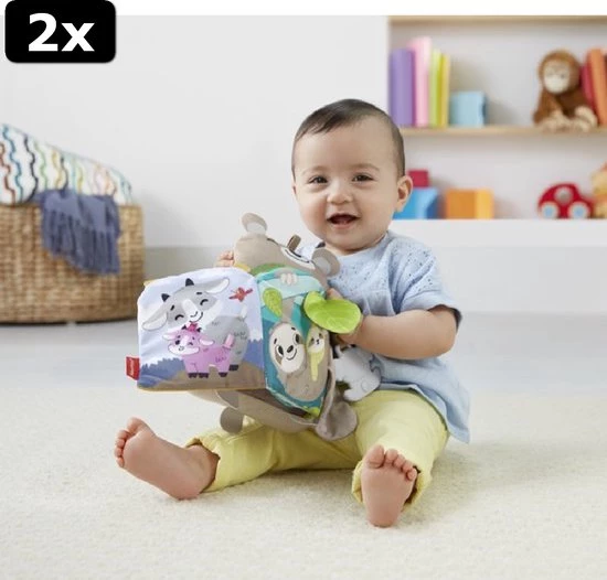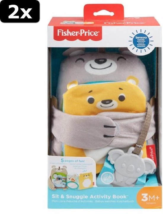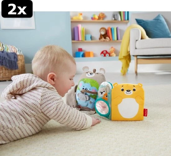 Het Fisher-Price activiteitenboek zitten en knuffelen is een sensorisch avontuur voor je baby. Dit zachte boekje heeft 5 bladzijden met dierenthema, elk met zijn eigen spannende sensorische activiteit voor je kleintje. Het boekje kan zelfstandig blijven staan zodat baby’s ermee kunnen spelen terwijl ze hun hoofdje omhoog houden in de buikligging, en het zachte berenvriendje is perfect om te knuffelen. Met een volledige knisperbladzijde, een grote spiegel om in te kijken, een blad om kiekeboe mee te spelen en een bijtring in de vorm van een koala is dit zachte activiteitenboek het perfecte maatje voor je drukke uk.