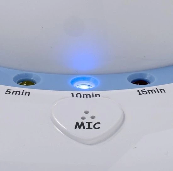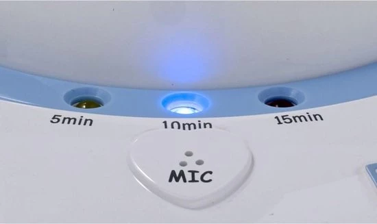 Als je de baby projector hebt aangezet zal hij beginnen met het projecteren van de beelden en het afspelen van de liedjes. Slaapt jouw kindje makkelijk en snel in? Dan kies je voor een speeltijd van vijf minuten. Maar als dat nodig is kan je ook kiezen voor tien minuten of een kwartier. Als de voorstelling is afgelopen slapen de meeste kleintjes al heerlijk. Als je baby hierna toch nog wakker is, pakt de BC-125 de geluiden op en zal opnieuw beginnen met het afspelen en je kindje in slaap sussen. Als je kindje later in diepe slaap is kun je er voor kiezen de baby projector helemaal uit te zetten.