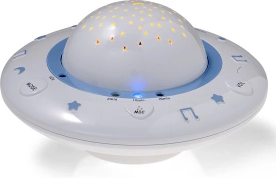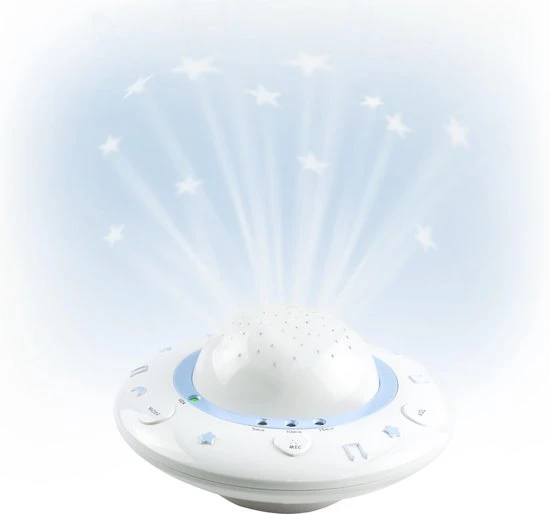 De BC-125 is een baby projector waarmee je mooie en kleurrijke beelden op het plafond van je babykamer projecteert, terwijl er rustige slaapliedjes door het kamertje klinken. Zo wordt heerlijk in slaap vallen een vaste gewoonte. De voordelen van de BC-125 baby projector:
