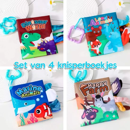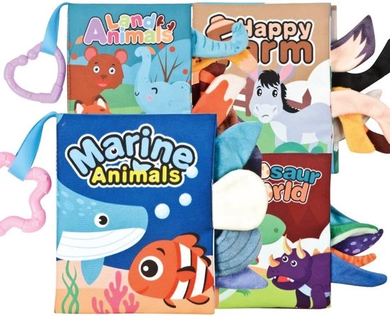 Boekjes zijn erg belangrijk voor de ontwikkeling van jouw kindje. Maar zijn de normale boekjes niet een beetje saai? Met deze set van 4 verschillende boekjes met rammelaar en zachte onderdelen heb jij de leukste boekjes voor jouw kindje in huis! Met verschillende thema’s en schattige dieren. Het perfecte kraamcadeau!