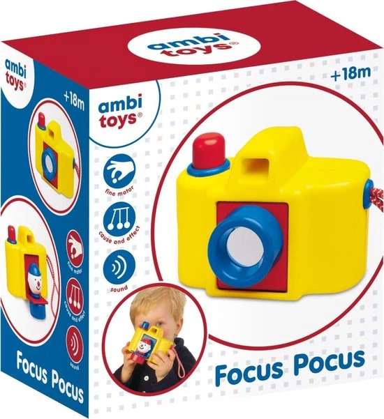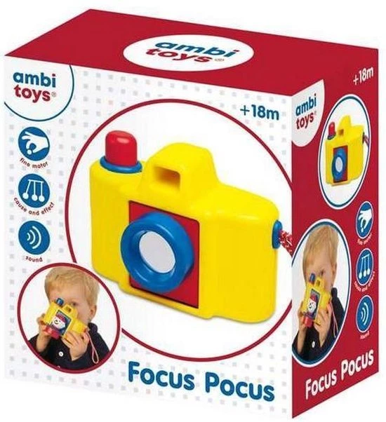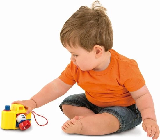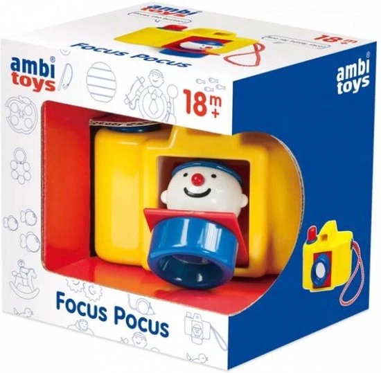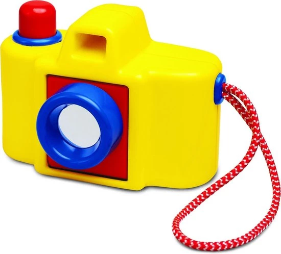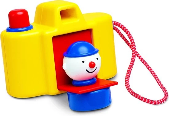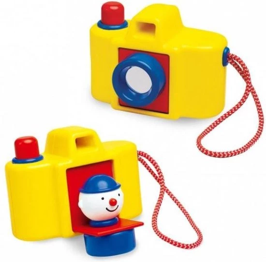 Richt de camera, druk op de knop en er komt een leuk clowntje tevoorschijn! De eerste camera voor een kind, met zoeker en pieperknop.