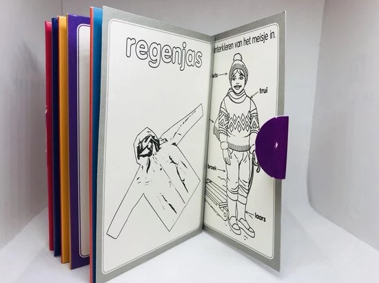 zodat er geleerd kan worden met meerdere woorden. Ook bevat het boekje kleurplaatjes zodat er zelf ook een mooi kledingstuk gemaakt kan worden.