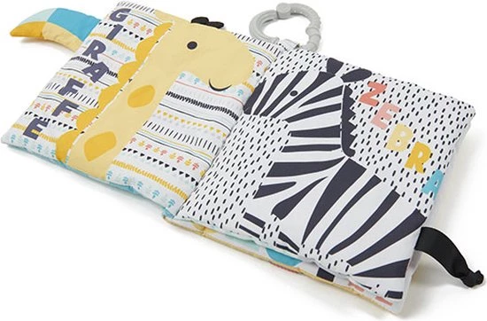 Dit activiteitenboek voor baby’s heeft 6 pagina’s vol sensatie! Het is perfect voor het stimuleren van het zicht dankzij de kleuren en illustraties, maar ook voor aanraking en gehoor. De bladzijdes knisperen en kraken. Er zit ook een clip aan om het boekje op te hangen aan de kinderwagen, het autostoeltje, de kinderstoel of waar je maar wilt!