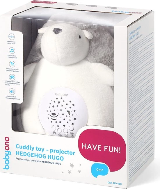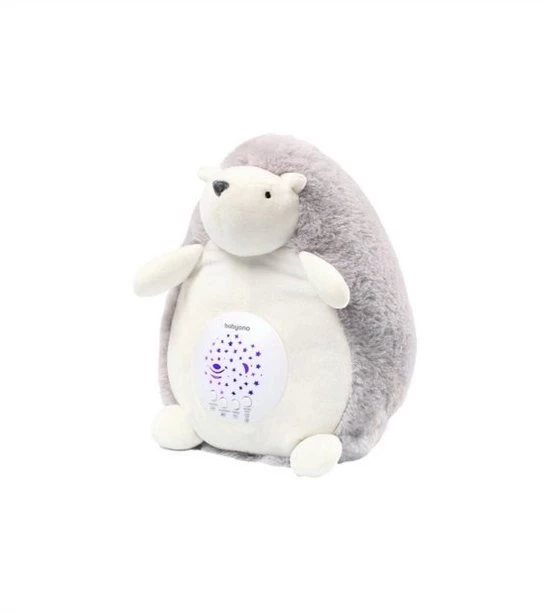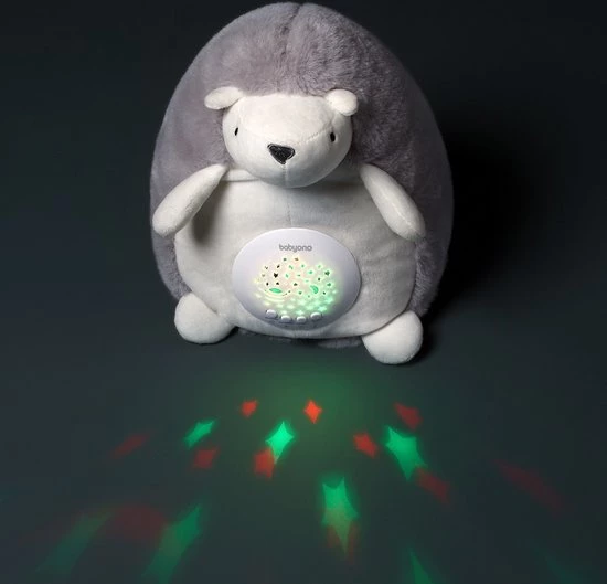 Scarlet het egel zal vanaf de eerste dagen van zijn leven de beste vriend van de baby worden. Hij voelt zeer aangenaam aan en door zijn ingetogen, natuurlijke kleuren past hij perfect in elk interieur. Dankzij de ingebouwde projector creëert het een magische, veelkleurige aura vol sterren, waardoor je baby in slaap valt. Het zal hem ook in slaap wiegen met een van de vele aangename melodieën. Bovendien produceert het kalmerende, witte ruis en rustige natuurgeluiden. Het speelgoed helpt uw ​​kind zich op verschillende niveaus te ontwikkelen. Het zal een positieve invloed hebben op zijn gezichtsvermogen, gehoor en aanraking.