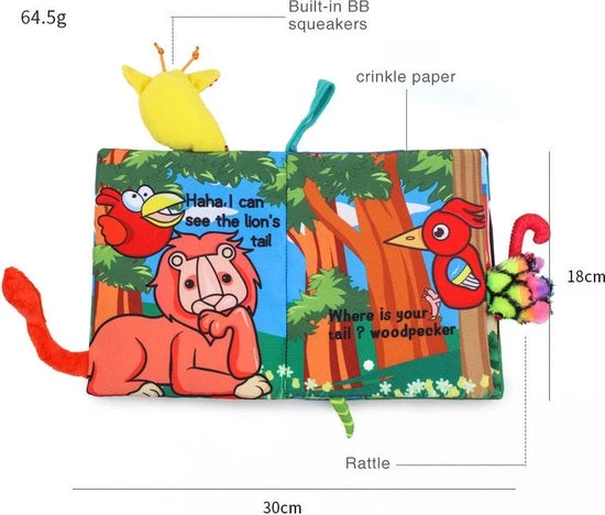 Ingebouwd geluidspapier op de omslag helpt om de aandacht van de baby te trekken.