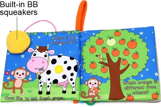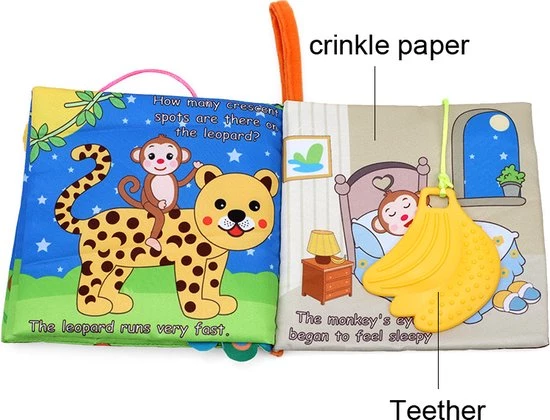 Naam: Monkey Finding Spotted Cloth Books (ingebouwd geluid papier BB blaffen, verstoppertje kat, kauwgom massage kauwgom kauwgom functie)