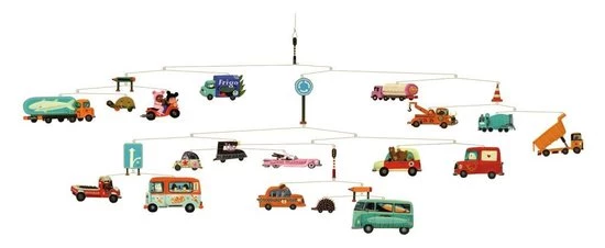 De lichtgewicht mobiel kan met een plakkertje makkelijk op het plafond bevestigd worden. Een design-eyecatcher voor op elke kinder -of speelkamer!