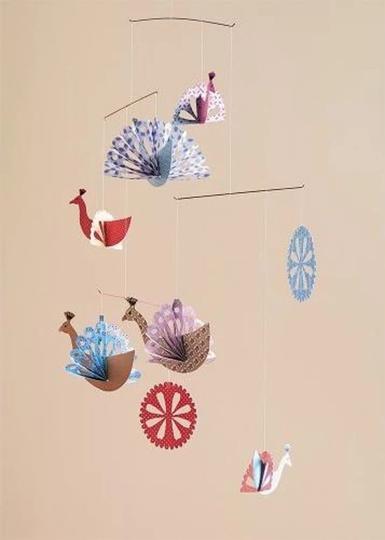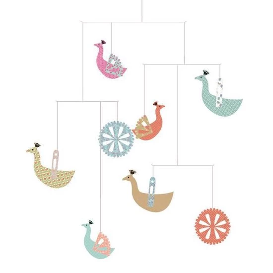 De lichtgewicht mobiel kan met een plakkertje makkelijk op het plafond bevestigd worden. Een design-eyecatcher voor op elke kinder -of speelkamer!