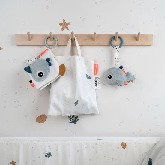 Ga op avontuur in de zee met dit leuke Done by Deer Activiteitenboek Sea Friends. Dit boekje is ontworpen om jouw baby’s zintuigen te stimuleren en ontwikkelen. Het boekje heeft verschillende texturen, krakende oppervlaktes en een zachte bijtring in de vorm van een schelp. Bovendien kan je jouw speen vastmaken aan dit boekje met behulp van klittenband. Dit boekje is daarom leuke entertainment voor in de autostoel of als aanhangsel op je speelmat tijdens buikoefeningen.