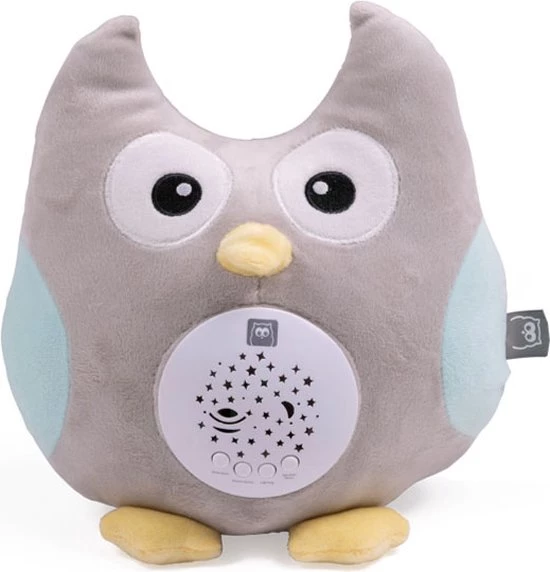 Deze lieve knuffeluil projecteert gekleurde lichtjes vanuit zijn buik. Verander de muren van de kinderkamer in een hemel vol sterren, die elkaar afwisselen in verschillende kleuren. Het bevat ook verschillende melodieën en geluiden. Omdat het superzacht is, wordt deze uil vast en zeker het favoriete slaapmaatje van je baby. Geschikt vanaf de geboorte.