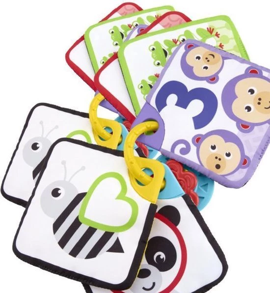 • Fijnmotorische vaardigheden: Het knisperende materiaal van de kaarten stimuleert je kindje te grijpen, wat de behendigheid bevordert