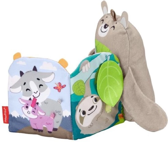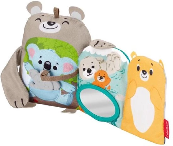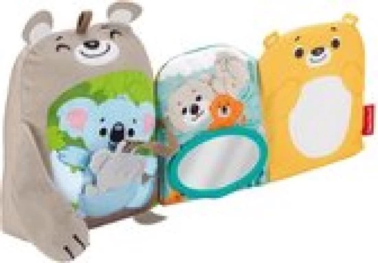 Het Fisher-Price activiteitenboek zitten en knuffelen is een sensorisch avontuur voor je baby. Dit zachte boekje heeft 5 bladzijden met dierenthema, elk met zijn eigen spannende sensorische activiteit voor je kleintje. Het boekje kan zelfstandig blijven staan zodat baby’s ermee kunnen spelen terwijl ze hun hoofdje omhoog houden in de buikligging, en het zachte berenvriendje is perfect om te knuffelen. Met een volledige knisperbladzijde, een grote spiegel om in te kijken, een blad om kiekeboe mee te spelen en een bijtring in de vorm van een koala is dit zachte activiteitenboek het perfecte maatje voor je drukke uk.