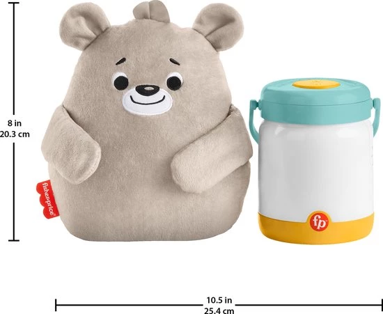 Het Fisher-Price Sluimerkastje met Vuurvliegjes en Babybeer is een geluidsmobiel die je in de kinderkamer kunt zetten en waarvan je de muziekjes, geluiden, knipperende lichtjes en het geprojecteerde licht kunt aanpassen. Zo valt je baby heerlijk rustig in slaap. Naarmate je baby ouder wordt, kun je de schattige pluchen beer losmaken zodat je kleintje er lekker mee kan knuffelen. De lantaarn doet dienst als fijn reisnachtlampje voor je peuter. Maak je geen zorgen, Beer, door de vuurvliegjes zie je waar je bent!