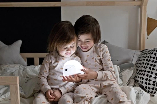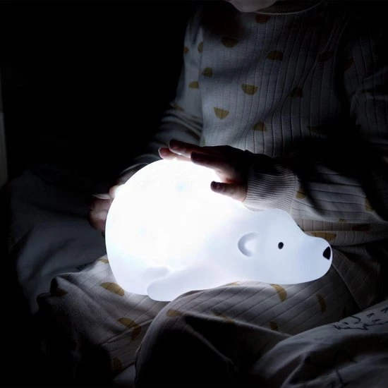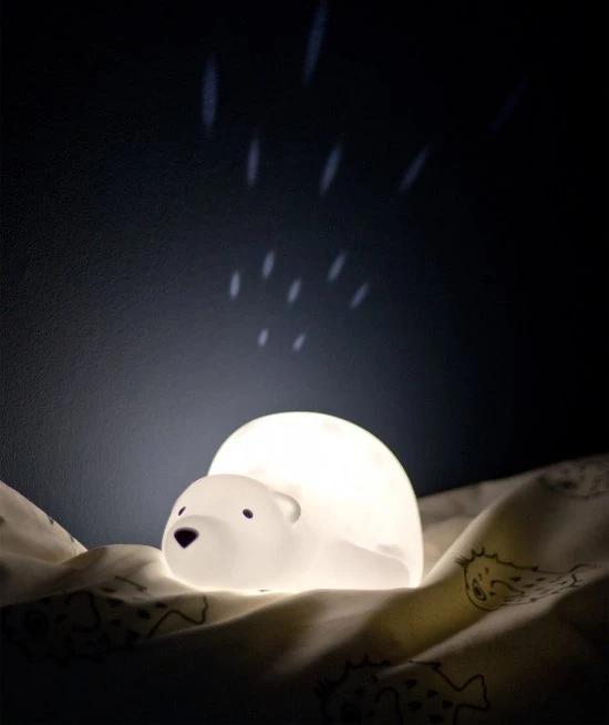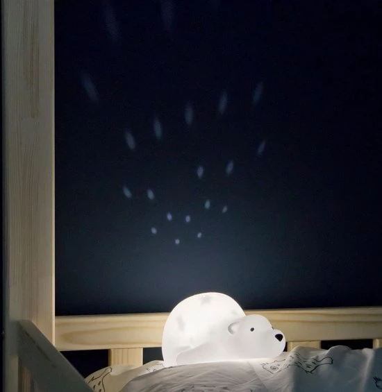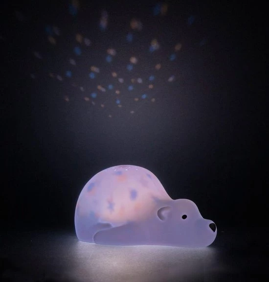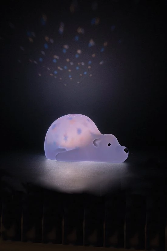 De Björn Projector van Flow Amsterdam zal je kamer in een magische wereld veranderen. Je kleintje kan vredig in slaap vallen als hij kijkt naar Björn en de projectie op het plafond. Björn is ook een nachtlampje met sterretjes over zijn hele lichaam. Op Björn zitten zes verschillende lichtopties. Wit, blauw, geel, alle kleuren, vervagen tussen de kleuren en alle kleuren aan/uit vervagen. Daarnaast is het mogelijk te kiezen tussen drie felheidsopties. Björn is oplaadbaar en heeft een optionele timer van 30 minuten.