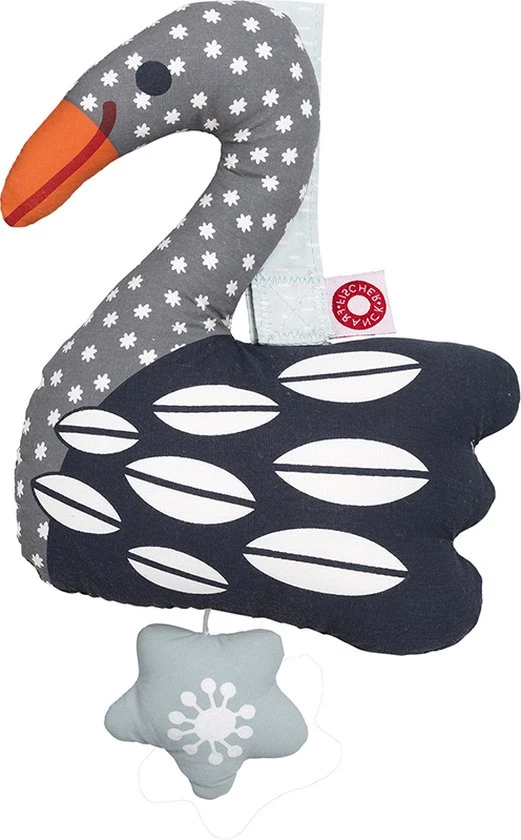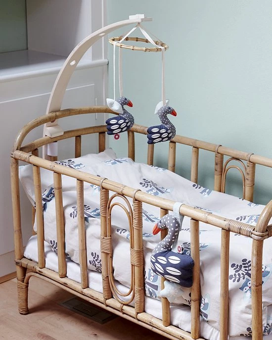 Hang de schattige zwaan boven kinderwagen, bed, commode, ledikant of box. Als je aan de bloem trekt, speelt de zwaan Schuberts “Lullaby” voor baby.
