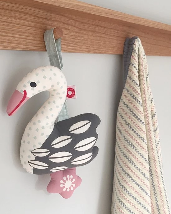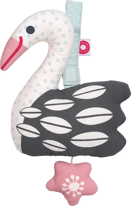 Hang de schattige zwaan boven kinderwagen, bed, commode, ledikant of box. Als je aan de bloem trekt, speelt de zwaan Schuberts “Lullaby” voor baby.