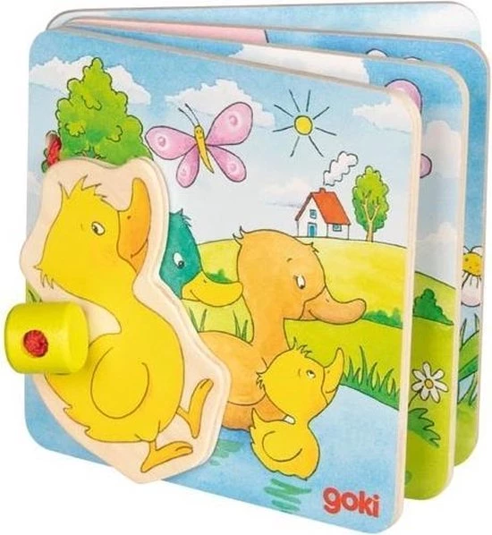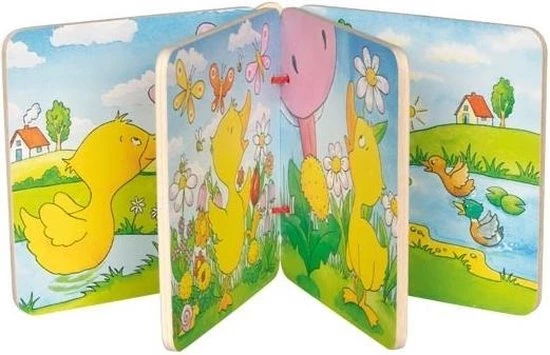 Leuk en leerzaam houten boekje met acht afbeeldingen over eendjes. Het boekje heeft stevige houten bladzijdes en past perfect in kleine babyhandjes.