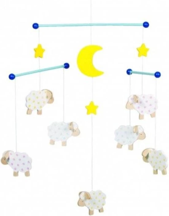 Mooi houten mobiel met schaapjes, dat geweldig past in de kinderkamer. Geschikt voor kinderen vanaf 0 jaar.