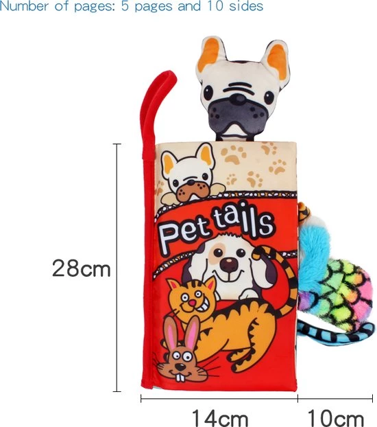 | Verpakkingsinhoud | een, baby, stoffen, boek, met, "Pets, tails", thema |