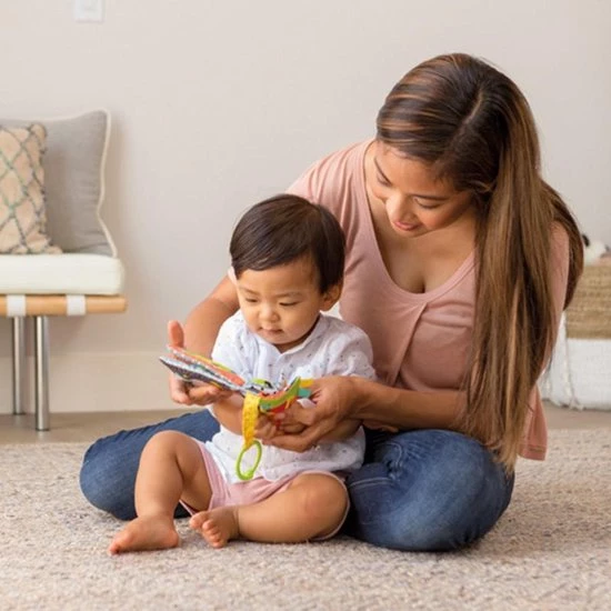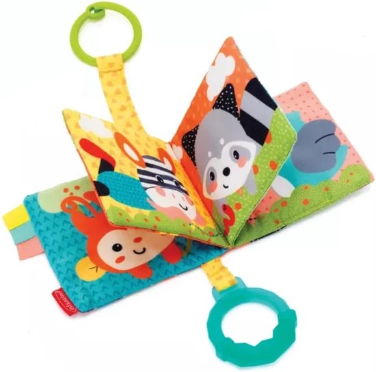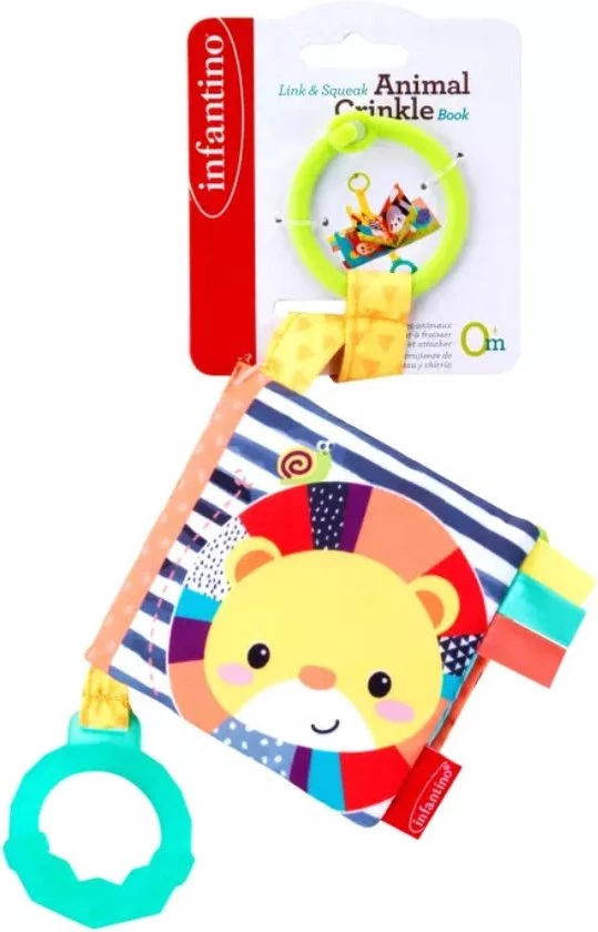 Dit kleurrijke knisperboekje van Infantino is geschikt voor kinderen de geboorte. Laat uw baby zijn/haar motorieke vaardigheden ontwikkelen door de pieper in te knijpen. Bevestig het boekje met de ring aan kinderwagen, buggy of box. Voorzien van bijtring voor doorkomende tandjes.
