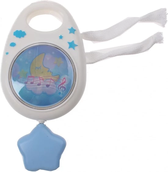 De muziek van deze Johntoy muziekmobiel doet de baby wegdromen in zijn bedje. Het figuur op de voorkant draait rond zodat de baby daar naar kan kijken en rustig wordt. Je zet de muziek mobiel aan door aan het sterretje met touw te trekken.