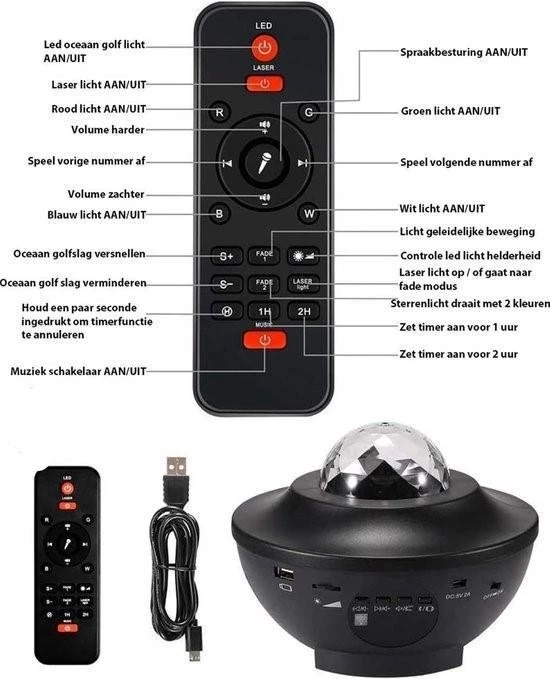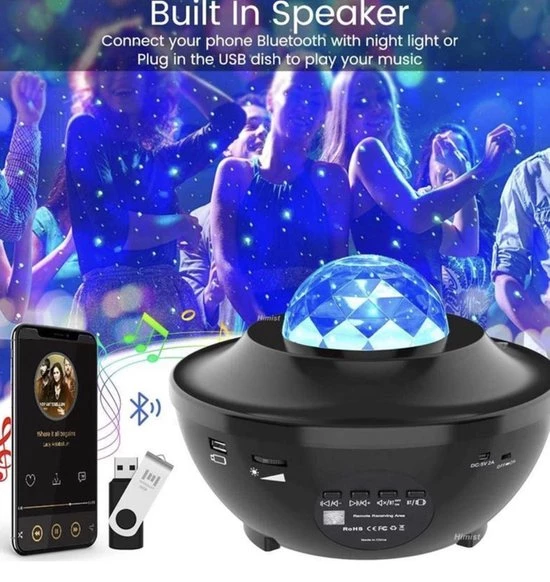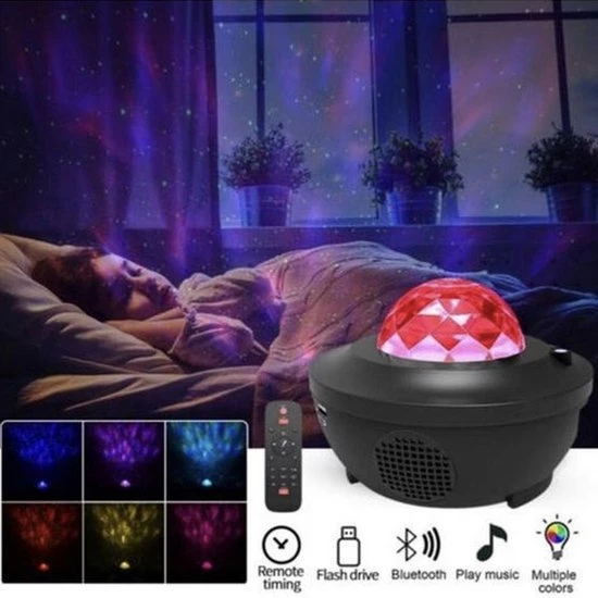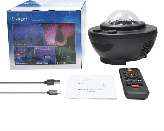Voordelen: ✔ Prachtige simulatie van sterren en golven ✔ Activeert het ontdekkingsverlangen ✔ Multifunctioneel ✔ Milieuvriendelijk opladen via USB ✔ 10 verschillende lichtshows mogelijk ✔ simpel te bedienen afstandsbediening ✔ Muziek af te spelen via USB of Bluetooth ✔ Ook perfect voor een romantisch avondje Inhoud verpakking ➜ 1x Skylight Sterrenprojector ➜ 1x Afstandsbediening ➜ 1x USB-label ➜ 1x Handleiding