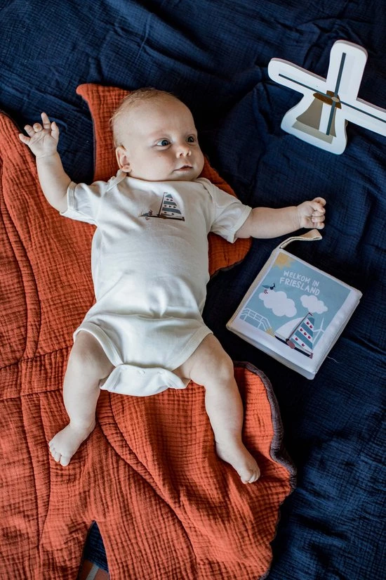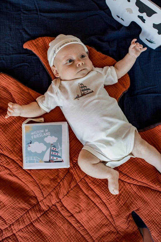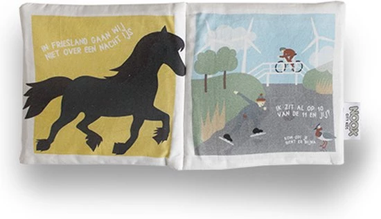 Het boekje is lekker zacht om mee te spelen en het knispert. Lees samen op schoot of bevestig het met de handige strap aan je box of kinderwagen. Nog even en je kindje wijst zelf een skûtsje aan!