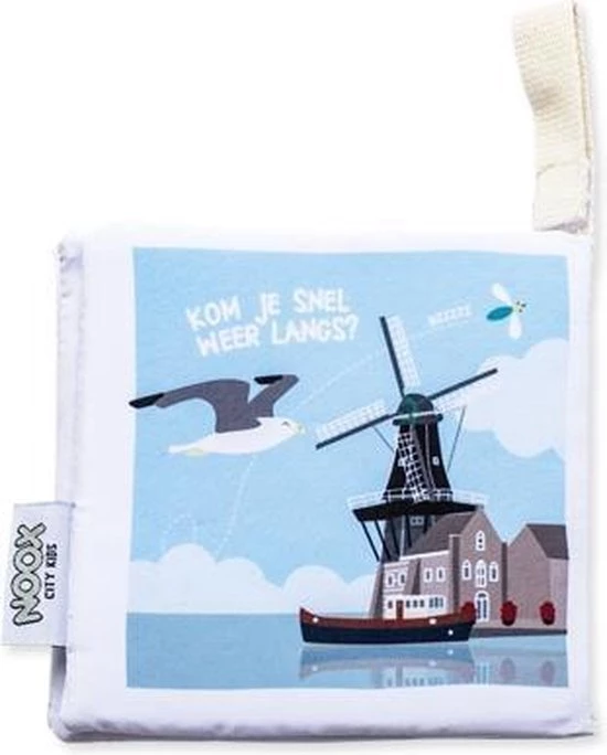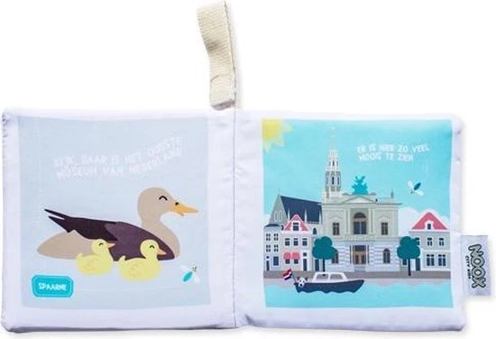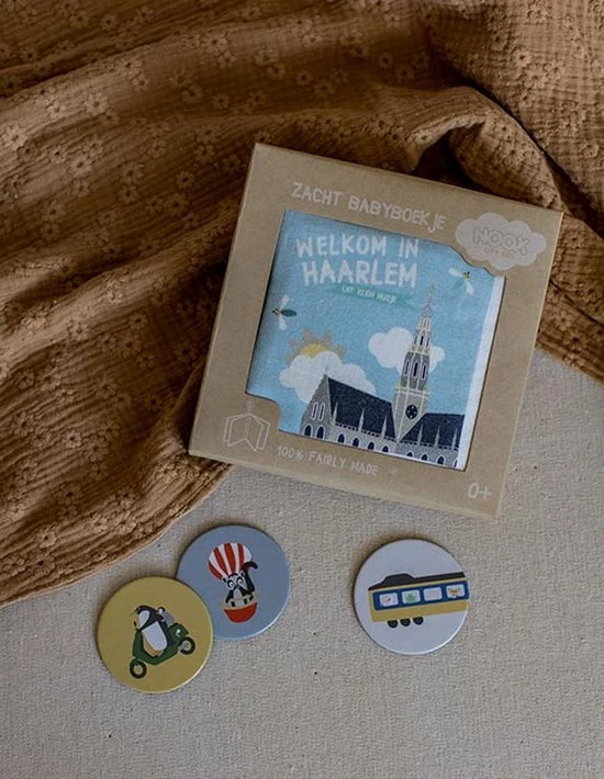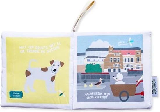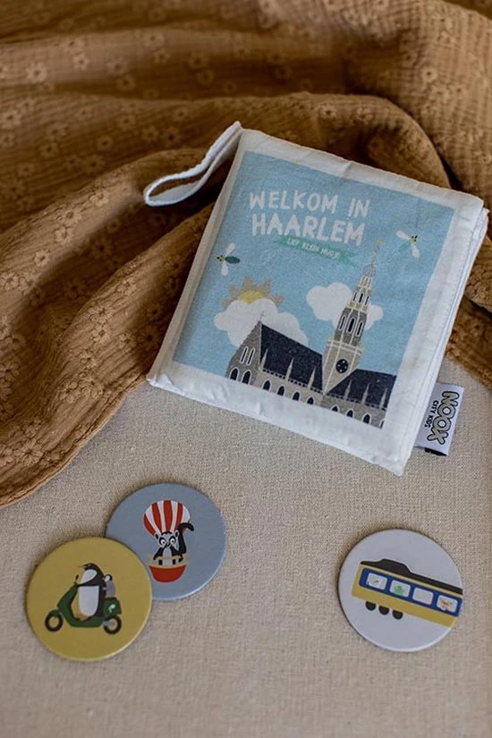 In dit zachte, kleurrijke babyboekje nemen de stadsdieren je mee op ontdekking in Haarlem. Dikke duif, meeuw, ooievaar en de andere stadsdieren laten jou hun favoriete stukje Haarlem zien. Ga jij met ze mee? Het boekje is lekker zacht om mee te spelen en bevat materiaal dat licht knispert. Lees het boekje samen op schoot of bevestig het met de handige strap aan je box of kinderwagen, buggy of maxicosi en neem het lekker mee naar buiten.