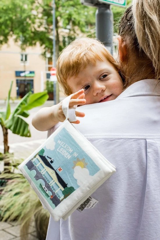 In dit zachte, kleurrijke babyboekje nemen de stadsdieren je mee op ontdekking in Leiden. Hond, Dikke Duif, Sjieke poedel en de andere stadsdieren laten jou hun favoriete stukje Leiden zien. Ga jij met ze mee? Het boekje is lekker zacht om mee te spelen en bevat materiaal dat licht knispert. Lees het boekje samen op schoot of bevestig het met de handige strap aan je box of kinderwagen, buggy of maxicosi en neem het lekker mee naar buiten. Nog even en je kindje wijst zelf Naturalis aan!