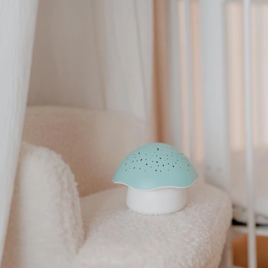 Deze mooie Mushroom Sterrenprojector van Pabobo helpt je kindje bij het in slaap vallen. Hij projecteert sterretjes en een maantje op het plafond van de slaapkamer, waardoor het lijkt of je kleine onder een prachtige sterrenhemel ligt! Je kunt hem instellen in de kleur groen, blauw of rood, of je laat de kleurtjes afwisselen.