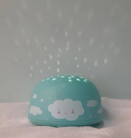 Deze unieke lamp met schattige wolkjes projecteert sterren op het plafond van je baby- en kinderkamer. Met de schakelaar wissel je gemakkelijk tussen verschillende kleuren sterren: regenboogkleurtjes, oranje, groen of blauw. Door de handige timer schakelt de projector lamp automatisch na 30 minuutjes uit. Zo kan jouw kleintje in slaap vallen onder een lovely sterrenhemel!