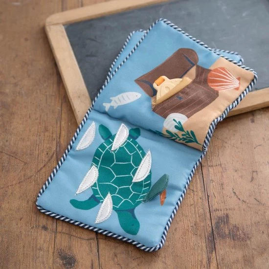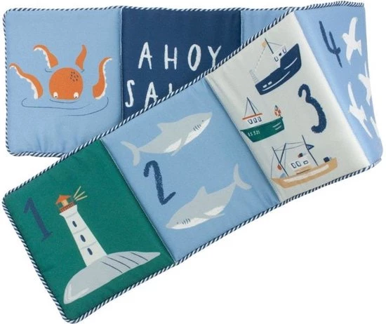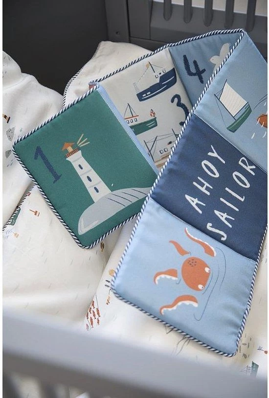 Een prachtig stoffen babyboekje Seven Seas van het Deense merk Sebra.