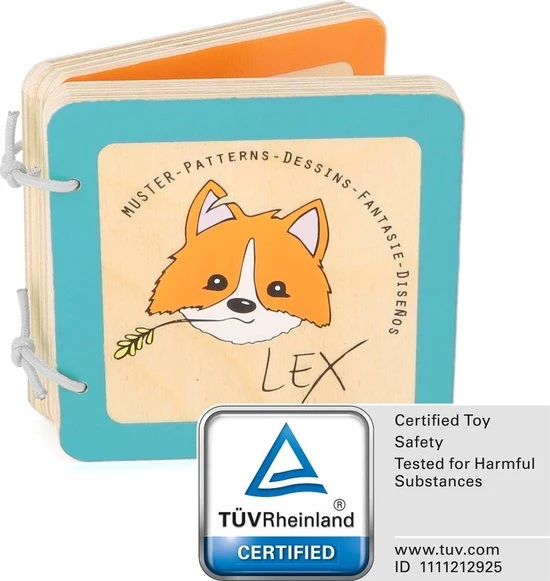 | Verpakkingsinhoud | Houten, baby, boekjes, /, Plaatjes, boek, -, Lex, de, vos, (patronen), -, interactief, -, FSC®, -, Baby, speelgoed, vanaf, 1, jaar |