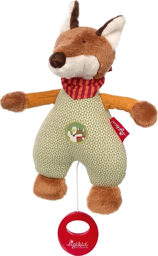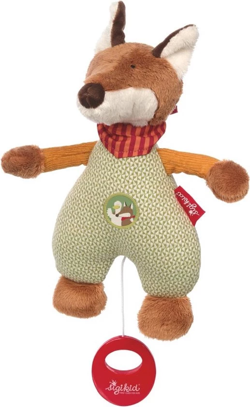 FOREST FOX – de slimme en goedaardige kleine vos kan geen vlieg kwaad doen. De gans is zijn beste vriend en de knuffelige, streelzachte vos is ook erg populair bij mensenkinderen. Van het fopspeenkoord en het knuffeldoekje tot de handpop, alle items die te maken hebben met de behoeften van baby’s en peuters zijn te vinden in deze cadeauserie. De lieve ongeveer 24 cm grote vos gemaakt van groen en wit jacquard, roodbruin micro-pluche en okerkleurig koord is de perfecte metgezel voor baby’s en peuters en daarom het ideale cadeau voor geboorte of doop. Het mechanisme in het dier kan worden gestart door simpelweg aan de rode grijpring te trekken. De kleine vos is ook zeer geschikt om te spelen en te knuffelen: hij biedt tal van grijpopties die bijdragen aan de ontwikkeling van motorische vaardigheden, zoals de lange armen en oren. De muziekdoos dient ook als slaaphulp vanwege de kalmerende melodie en wordt geleverd met een van de vijf slaapmelodieën – willekeurig gekozen. Neem bij vragen over speciale melodiewensen contact op met de fabrikant. De halsdoek zit stevig vast zodat hij niet kan worden ingeslikt. De ogen zijn geborduurd en het lijfje is zacht gevuld met hygiënische polyesterwatten. De knuffelzachte stoffen zijn van hoge kwaliteit en bestand tegen veelvuldig wassen. Het speeltje kan worden verwijderd om te wassen – open gewoon de veiligheidsrits met een paperclip (zie instructies) en het speeltje kan in de wasmachine op 30 ° C worden gewassen. De muziekdoos is vanaf het begin geschikt voor de baby en wordt vaak voor de geboorte op de buik van mama gelegd. Slaap lekker, kleine schat! sigikid hecht bijzonder belang aan geselecteerde materialen en verfijnd design. Geaccrediteerde testinstituten voeren voortdurend tests uit in productontwikkeling en productie in overeenstemming met de speelgoedrichtlijn 2009/48 / EG. Het merk sigikid staat voor knusse producten die emoties oproepen en zowel ouders als kinderen een goed gevoel geven. Al meer dan 50 jaar hanteert sigikid een duidelijk motto: FIRST CLASS FOR KIDS! We maken de wereld van gezinnen vanaf het begin knuffelig en kleurrijker.