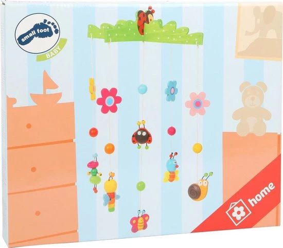 Small Foot Spring Dream mobiel Deze kleurrijke blikvanger voor de kinderkamer zal de jongeren aanmoedigen om de wereld om hen heen speels te ontdekken en waar te nemen. Het fascineert jonge kinderen met zijn vele kleurrijke bloemen, vlinders en slakken die vrolijk dansen over de commode. Laat de lente in de kinderkamer! Specificaties: Geslacht: junior Kleur: multicolor Materiaal: hout Afmetingen: 26 x 26 x 54 cm (LxBxH) Leeftijd: vanaf 0 maanden