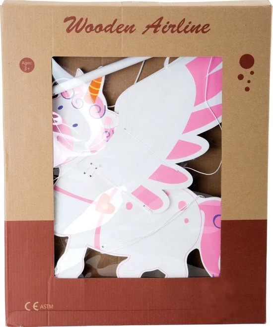 De eenhoorn is een mythisch figuur en komt alleen voor in sprookjes. Trek aan het touwtje en de eenhoorn vliegt met zijn wijdverbreide vleugels door de meisjeskamer.