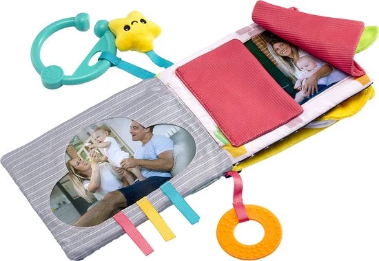 Het album bevat verschillende activiteiten om te spelen en de zintuigen van baby te stimuleren: