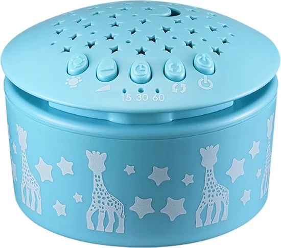 - Lichtfuntie: het doosje projecteert vele kleurrijke sterren in de kamer om baby te kalmeren;