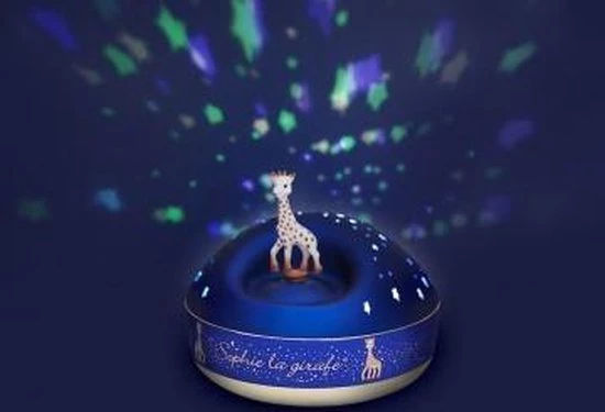 Met deze Sophie de Giraf sterrenprojector kan uw kindje heerlijk slapen onder de sterrenhemel! De sterrenprojector projecteert een sterrenhemel op het plafond terwijl tegelijkertijd het figuurtje van Sophie de Giraf rondjes draait. En dat is niet alles: de projector maakt ook muziek: je kan kiezen uit rustige slaapmuziek of natuurlijke geluiden.
