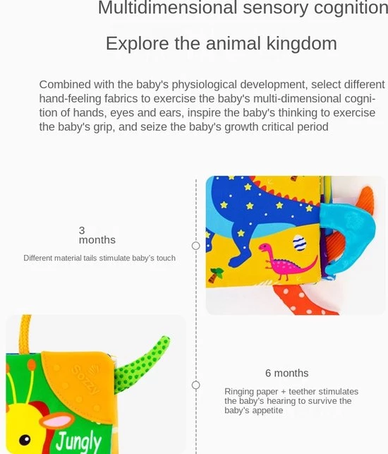 Sozzy Baby Speelgoed/knisperboekje /Educatief Baby Speelgoed /baby Born/boek Voor Kinderen/ Baby Boek /Zacht Speelgoed/Speelgoed Voor Baby/ Boek Met Bijtring/ “jungly Animals” Thema