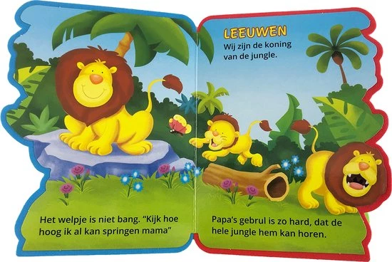 In dit babyboekje leert je kleintje allerlei dieren uit de jungle kennen. Op elke pagina word je meegenomen naar een nieuwe leefomgeving. Neem een kijkje bij de olifanten, leeuwen, nijlpaarden en meer!