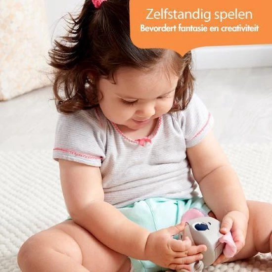 Op deze leeftijd is verstoppertje een van je kinds favoriete spelletjes. Leg een doek over het speeltje heen en speel verstoppertje, het ultieme spelletje voor deze leeftijd en geniet van de tijd met je kleintje. Zo hebben ze plezier bij het spelen, kunnen ze hun nieuwsgierigheid uiten en zijn ze blij als ze hun Wonder Buddy vinden en alle vrolijke geluiden horen. Je kunt ook de ontwikkelingskaarten gebruiken om het samen spelen van jou, je kind en zijn Wonder Buddy te stimuleren. Activeer de Buddy door op de knoppen te drukken, trek de aandacht van je kind door de geluiden die de Buddy maakt en moedig hem aan om zijn speciale vriendje na te doen. Door het praten, aanraken en nadoen van de Wonder Buddy ontwikkelt je kind zijn taalvaardigheid, communicatie en begrip, leert hij over oorzaak en gevolg, verbetert hij zijn interpersoonlijke vaardigheden en ontwikkelt hij een band met zijn ouders.