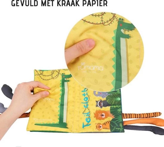 Het dierenstaart boekje laat je kind op plezierige wijze kennismaken met verschillende dieren. Aan de zijkant van dit boekje zitten staarten van dieren en de bladzijdes zijn gemaakt van krakend materiaal. Dit is voor baby’s niet alleen interessant, maar stimuleert daarnaast hun zintuigen. Kinderen leren de patronen en kenmerken van dieren kennen zoals de tijger, de olifant en de zebra. Door dit boekje samen met je kind door te nemen, verhoog je de interactie en draag je bij aan de taalontwikkeling van je kind. Ook leren kinderen om te luisteren en zich te concentreren.