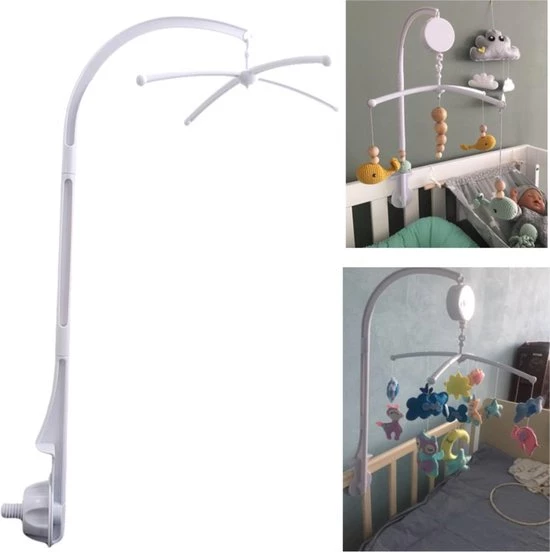 Maak je eigen, persoonlijke mobiel met deze handige wieg houder! De mobiel is gemakkelijk te installeren. Hang kleine knuffeltjes of speelgoed aan de haken en uw baby zal heerlijk in slaap vallen. Leuk om cadeau te geven!
