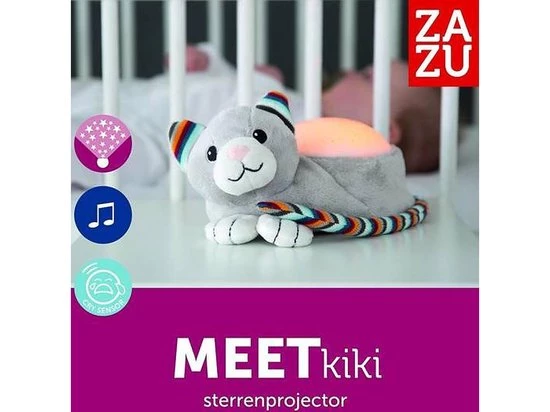 Zazu – Kiki De Kat – Luxe Plafonprojector Met Verschillende Soorten Muziek En Huilsensor – De Projector Bevat 3 Mooie Kleuren Om Een Prachtige Sterrenhemel Te Creeeren!